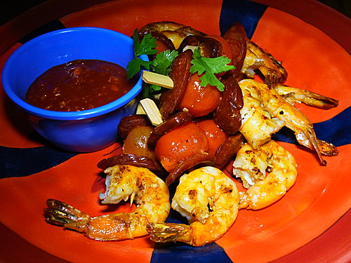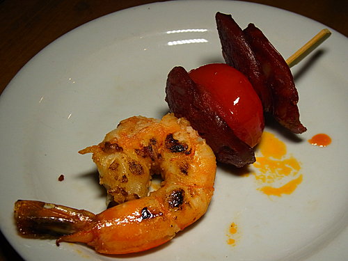 史考特虎蝦香腸烤串 ($98) 係非常惹味的佐酒小吃,但伴碟的 cocktail Sauce 加入了蒜蓉及 Tabasco 卻更為搶鏡,食串燒非蘸不可。