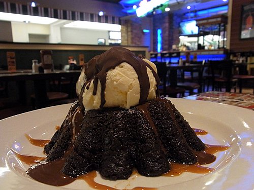 Molten Chocolate Cake 即 係 焗 朱 古 力 軟 心 蛋 糕 伴 雲 呢 拿 雪 糕 ,簡 稱 心 太 軟。呢 件 心 太 軟 賣 相 一 流 ,軟 心 蛋 糕 做 形 猶 如 火 山 一 樣 ,再 喺 頂 部 放 上 一 大 球 雲 呢 拿 雪 糕。