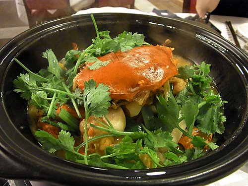雞 被 斬 到 支 離 破 碎 ,食 唔 出 羔 蟹 炆 雞 嘅 應 有 味 道 ,4 人 嘅 同 一 感 覺 都 係 蟹 雞 分 離 ,蟹 還 蟹 、雞 還 雞 ,無 乜 特 別。