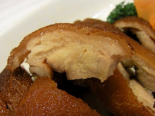 皇 子 豬 嘅 皮 尚 算 脆 口 ,但 又 稱 不 上 剛 燒 起 嘅 鬆 脆。
