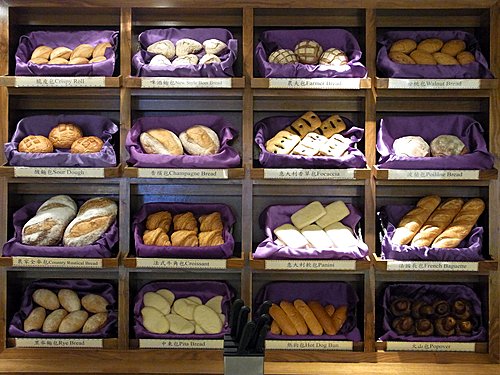 就 連 麵 包 都 有 18 種 咁 多,除 咗 一 般 法 國 長 包 、牛 角 包 ,特 別 到 連 啤 酒 包 、香 檳 包 、火 山 包 、波 蘭 包 都 有 提 供。