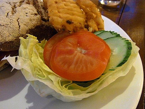 沙 律 上 嘅 幾 片 蕃 茄 、青 瓜 、生 菜 非 常 新 鮮 爽 口。