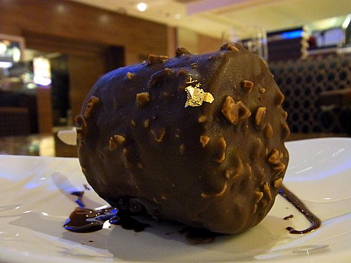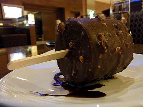 朱 古 力 脆 皮 上 耍 上 花 生 粒 及 濃 濃 嘅 朱 古 力 醬 ,內 裡 係 軟 綿 綿 如 雪 糕 般 嘅 朱 古 力 慕 絲 蛋 糕 ,以 一 支 雪 條 棍 穿 上 ,裝 成 朱 古 力 脆 皮 雪 條 一 樣 ,但 size 卻 係 雪 條 嘅 幾 倍。