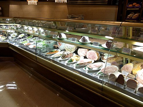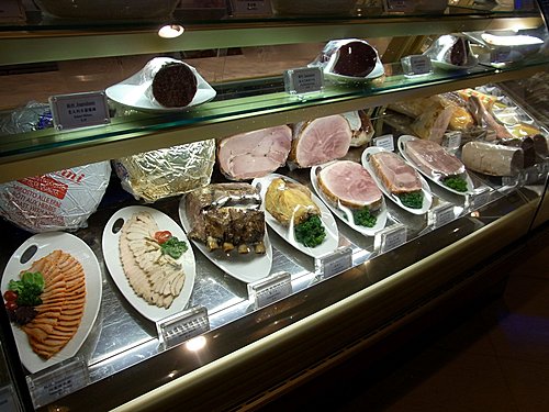 各 式 火 腿 、凍 肉 亦 多 達 20 款 ,要 分 上 下 層 擺 放。