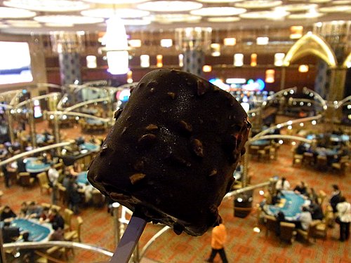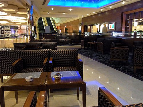 水 晶 廊 都 有 dress code?因 為 可 以 望 到 樓 下 嘅 賭 場 ,嚟 到 一 定 要 除 帽 ,我 戴 住 頂 Like Black ,保 安 即 時 示 意 . . .