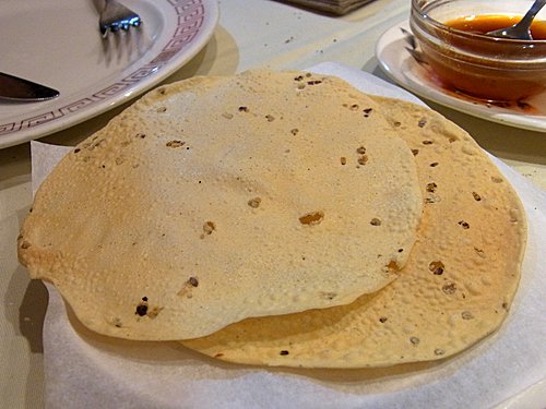 脆 皮 薄 餅 係 餐 前 小 食 ,送 嘅!2 大 塊 相 當 脆 口。