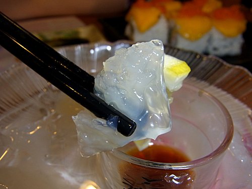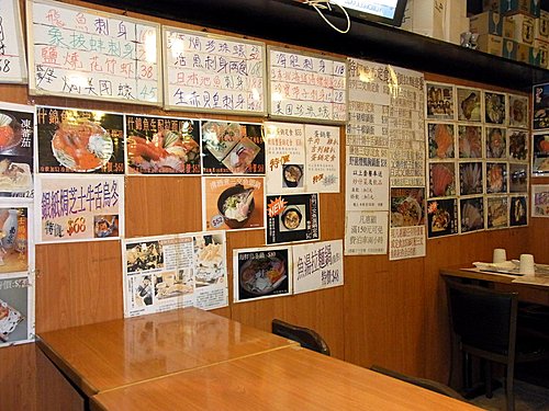 款 式 特 別 多 : 唔 好 以 為 新 界 地 方 做 街 坊 生 意 就 當 佢 係 間 普 通 日 本 料 理 ,佢 連 飛 魚 或 池 魚 刺 身 、珍 珠 蠔 、花 竹 蝦 或 水 母 呢 啲 一 般 料 理 都 無 嘅 佢 都 有 得 供 應。