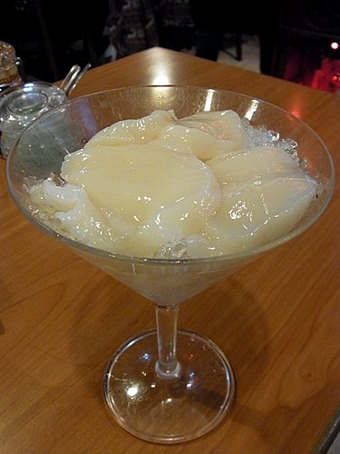 珍 寶 帶 子 刺 身 ($28) 比 餐 牌 內 嘅 一 般 帶 子 刺 身 貴 ,所 以 用 個 靚 杯 去 裝 ,仲 聽 到 老 闆 即 時 用 刨 冰 機 刨 咗 杯 冰 做 冰 鎮 添!但 王 妃 之 後 encore 嗰 杯 無 刨 冰 ,只 得 大 粒 杯。
