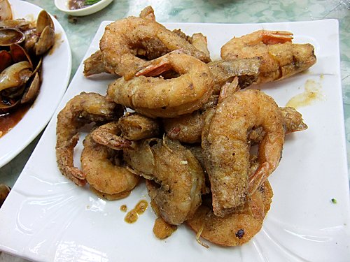 香 脆 黃 金 蝦 ($88) 同 一 個 價 錢 ,但 份 量 比 出 面 唔 少 舖 頭 還 要 多 ,Size 唔 細 嘅 海 中 蝦 有 一 打 以 上。Bobo 話 望 落 似 椒 鹽 蝦 ,我 於 是 問 吓 老 闆 點 解 黃 金 蝦 唔 似 人 家 嗰 啲 有 鹹 蛋 黃 嘅?佢 氣 定 神 閒 咁 答 :「黃 金 蝦 嚟 架!你 食 吓 先 啦!」