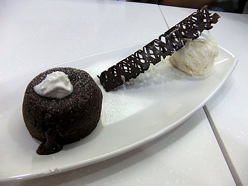 食 飽 飽 ,拉 大 隊 去 附 近 嘅 良 仔 食 甜 品 ,個 衰 仔 呢 晚 好 唔 聽 話 ,焗 雪 山 又 無 、奶 凍 又 無 ,朱 古 力 心 太 軟 賣 相 又 差 咗 好 多 ,心 太 軟 上 嘅 綠 葉 無 咗 都 算 ,連 條 朱 古 力 橋 都 短 咗 又 細 咗 ,H 妹 嗰 碟 條 橋 嚟 到 更 斷 開 3 截 ,無 奈 ing!