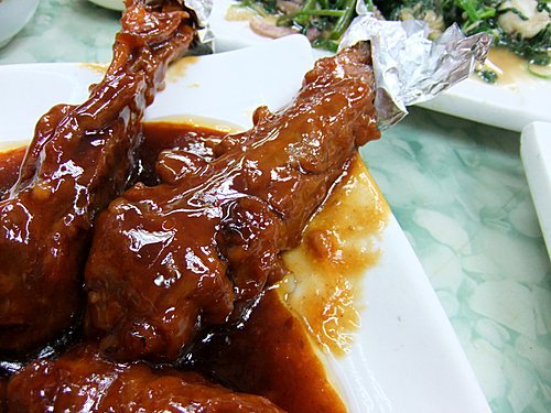 醬 燒 BB 骨 ($50) 碟 未 到 ,香 味 已 撲 鼻 而 來 ,原 來 一 碟 有 6 支 ,唔 怪 得 阿 叔 話 佢 又 要 一 支 啦!我 哋 得 5 個 人 之 嘛!