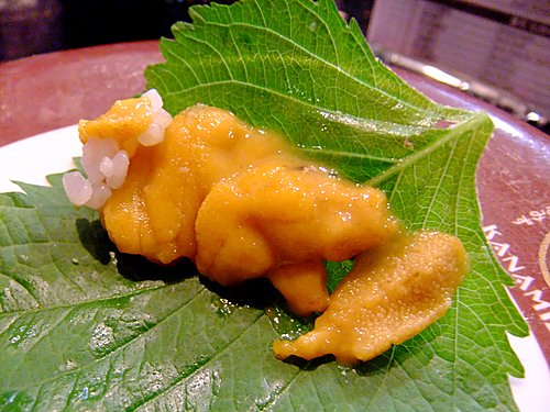 一 人 夾 咗 粒 好 似 飯 粒 咁 大 嘅 海 膽 試 吓 味 先 ,臨 放 入 口 ,腥 味 攻 鼻 ,明 顯 變 壞 ,好 彩 無 食 晒 咋!