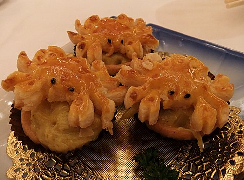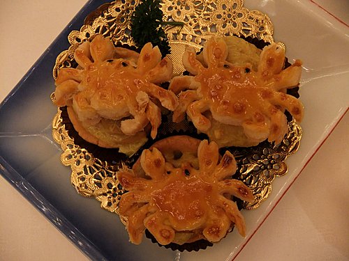 咖 喱 焗 蟹 撻 ($30) 係 廚 師 推 介 ,一 碟 有 3 隻 栩 栩 如 生 嘅 蟹 仔 趴 喺 咖 喱 撻 上 面。