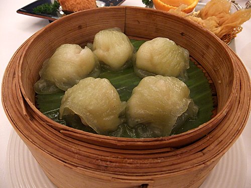 翡 翠 鮮 蝦 餃 ($30) 同 樣 價 錢 ,喺 香 港 嘅 酒 店 中 菜 廳 食 就 只 得 4 粒。蝦 餃 皮 唔 算 薄 ,但 餡 就 肯 定 靚 ,有 鮮 味 爽 口 河 蝦 仁 喺 裡 面 ,點 解 隻 蝦 餃 綠 色 嘅?加 咗 蘿 勒 嘛!