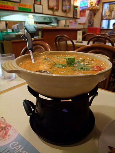 冬 蔭 功 ($48) 只 係 叫 咗 個 細 size 嘅 ,如 果 人 多 可 以 叫 個 貴 近 一 倍 嘅 大 窩。冬 蔭 功 一 凍 咗 味 道 就 會 差 好 遠 ,所 以 呢 度 全 程 有 個 爐 不 斷 熱 住 ,夠 晒 細 心。