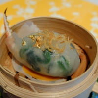 越 南 大 頭 蝦 嘅 蝦 膏 釀 滿 喺 新 鮮 蝦 膠 內 ,沾 上 麵 包 糠 後 炸 到 金 黃 香 脆 ,彈 牙 到 不 得 了。咬 嗰 陣 真 係 要 好 小 心 ,因 為 裡 面 嘅 蝦 膏 濃 湯 真 係 滾 熱 辣 得 緊 要。