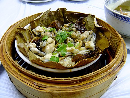 大 量 田 雞 腿 跟 金 針 、雲 耳 、香 蔥 等 一 齊 蒸 ,梗 香 啦!