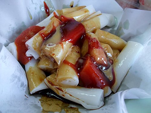 腸 粉 熱 騰 騰 ,夠 挺 身 ,入 口 滑 溜 有 彈 性 、唔 會 粉 ,相 當 有 水 準 ,證 明 無 偷 工 減 料 ,加 埋 各 種 醬 汁 ,Perfect!