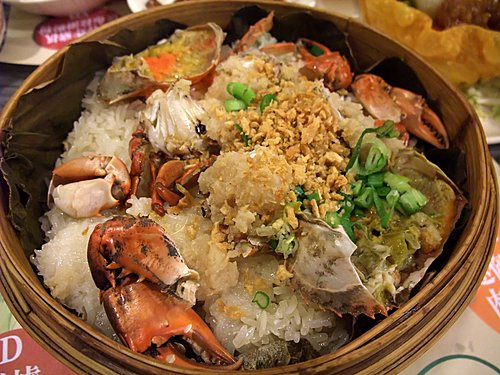 荷 葉 包 住 份 量 十 足 嘅 糯 米 飯 ,蒸 到 香 噴 噴 ,飯 粒 咬 落 夠 乾 身 兼 帶 有 蟹 香 及 蒜 香 ,好 好 味 呀!