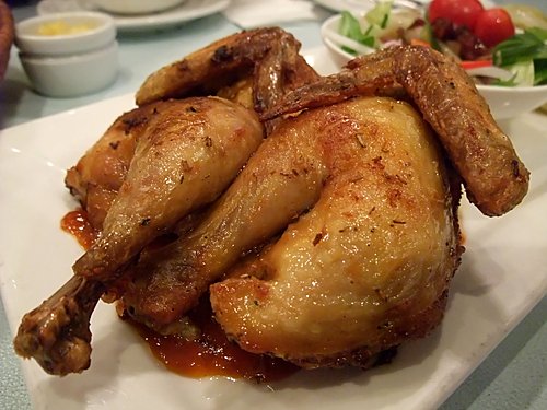 法 式 焗 芝 士 走 地 雞?一 睇 就 知 係 翻 焗 (或 係 翻 叮),唔 好 呃 我 啦!睇 雞 翼 表 面 就 知。咦?芝 士 呢?無 論 用 個 鼻 或 用 個 口 ,一 啲 芝 士 都 感 覺 唔 到。雞 係 咪 走 地 我 唔 知 ,但 食 得 出 肯 定 係 雪 藏 雞 ,肉 質 勁 嚡 又 乾 又 無 雞 味。吉 之 島 超 市 嘅 同 類 出 品 都 正 過 佢 ,而 且 仲 要 平 成 半 添!
