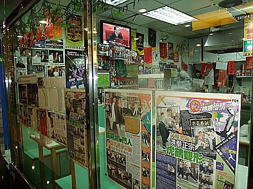 玻 璃 窗 貼 滿 大 量 剪 報 . . . 但 唔 係 呢 間 店 嘅 訪 問 、亦 唔 係 報 紙 食 評 ,而 係 虎 鶴 雙 形 . . . 真 係 無 厘 頭 到 爆 . . .