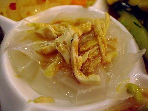 五 福 臨 門 拼 盆 包 括 唔 辣 唔 滑 嘅 麻 辣 海 蜇 、唔 好 味 嘅 涼 拌 茄 子 、唔 爽 口 嘅 大 豆 芽 . . .