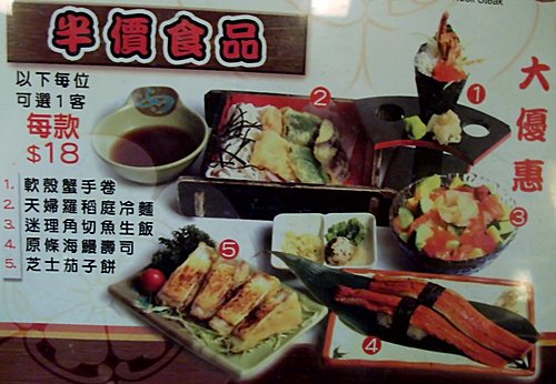 九 代 多 數 做 仔 妹 客 為 主 ,勝 在 款 式 多 又 夠 平 ,一 招 半 磅 三 文 魚 刺 身 賣 $18 足 以 令 門 口 晚 晚 排 晒 長 龍