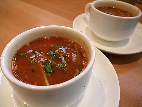 燒 蒜 蕃 茄 蝦 湯 嘅 蕃 茄 味 相 當 濃 ,熱 辣 辣 飲 落 幾 舒 服