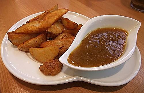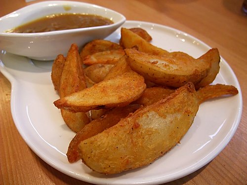 香 辣 焗 薯 角 配 自 家 製 咖 哩 汁 其 實 唔 蘸 汁 已 經 好 好 味 ,但 個 咖 喱 汁 又 好 香 濃 噃!薯 角 蘸 完 另 有 一 番 滋 味