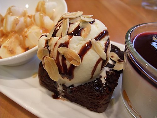 雲 呢 拿 雪 糕 配 暖 心 黑 朱 古 力 蛋 糕 賣 相 超 吸 引 ,一 食 就 知 個 雪 糕 唔 係 雀 巢 嗰 類 普 通 貨 色