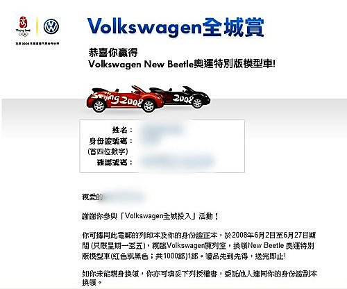 呢 個 星 期 大 家 仍 活 在 沉 痛 之 中 ,四 川 地 震 嘅 死 亡 人 數 已 超 過 六 萬 二 千 人 . . . 唯 有 盡 量 搵 啲 嘢 氹 吓 自 己 開 心 王 子 一 向 好 鍾 意 甲 蟲 車 ,見 Volkswagen 有 個 奧 運 遊 戲 送 New Beetle 奧 運 特 別 版 模 型 車 咪 參 加 吓 囉 !Yeah!真... 看全文 -