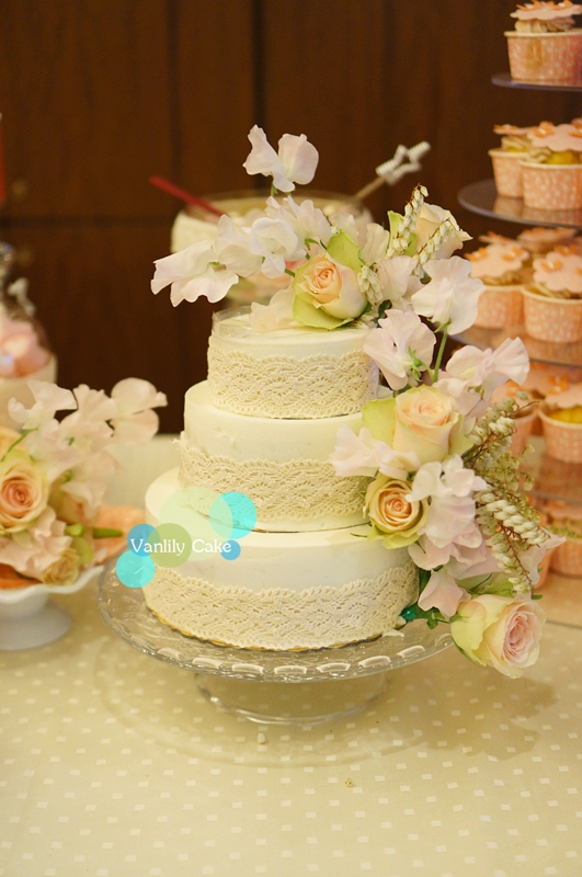 鮮花裝飾的結婚蛋糕是妹妹的出品,蛋糕當然是由我來製作
