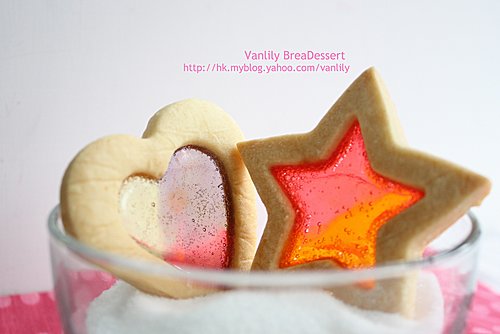 新年前大B想我幫她做一點曲奇, 在學校吃盆菜後跟同學一起分享~ 於是我便立即想起這個用果汁糖做的玻璃曲奇~ 其實很久以前看到日本網誌已經深深吸引, 後來見到雪雪兔也做了, 就更急不及待想試做呢~ 結果好成功, 原來好容易做呢~ 大B和她的同學仔都很喜歡啊! 中間的"玻璃", 其實是果汁糖來的~ 曲奇香脆,... 看全文 -