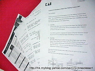 個比賽聽日就係喇~~ (詳細資料按此) 其實今次可以去參賽, 我已經好開心(真嫁~), 可以比我見識下呢d大場面, 同時又見識下人地既作品~ 真係一個好難得既機會啊~ 自己又唔係好緊張~ 整蛋糕個part就唔係咁驚(唔知係咪平時都整慣呢~), 反而怕會帶漏野!! 總之希望明天順順利利就已經好足夠喇~ 明天我會係2:00 pm到尖沙咀既Towngas Avenue參賽, 我唸6:00到就知結果~ 一有結果, 我就會send... 看全文 -