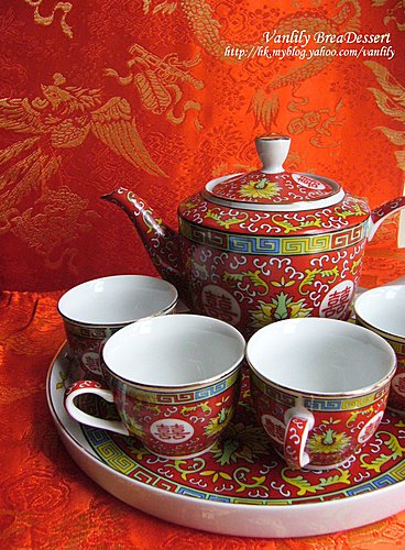 婚期越來越近, 就越來越多鎖碎事要辦~ 這套就是我當天會用的敬茶茶具呢~ 杯子有耳仔就不怕燙了~ 仲有個2塊用來跪禮的墊~ 呢set用具好重要, 我既金器&龍鳳鈪都係全靠佢~ yeah! 唔該哂我既婚禮顧問minicorgie!! yeah! 又搞掂一樣!... 看全文 -