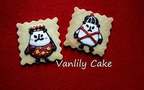 聾貓著裙褂和禮服啊~ 哈哈!!!Anson很喜歡小克的聾貓, 小克就替她和她老公畫了這對著中式禮服的聾貓~ 於是我就把這對可愛的公仔用icing畫在曲奇上, 為Anson的婚禮加上點點色彩~除了icing cookie, 還有cupcake和macaroon呢~ 這3個色的macaroon都是配襯Anson當天的花球~ Anson也很喜歡桃紅色, cupcake上放了桃紅色的糖花 (不過燈光關係, 影不到... 看全文