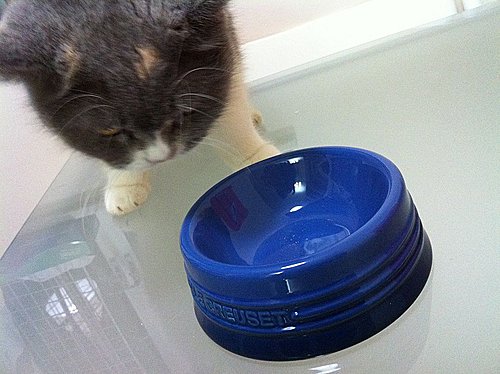 再入番兩隻rice bowl比大王&自己, 最好笑係, pet bowl同大王個rice bowl同色, 我驚放錯貓糧比大王食....wakakakaka