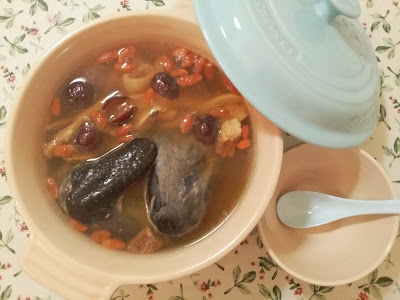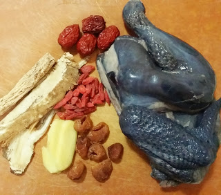 1.黨參切段, 當歸片、紅棗去核、圓肉和杞子浸洗一下。