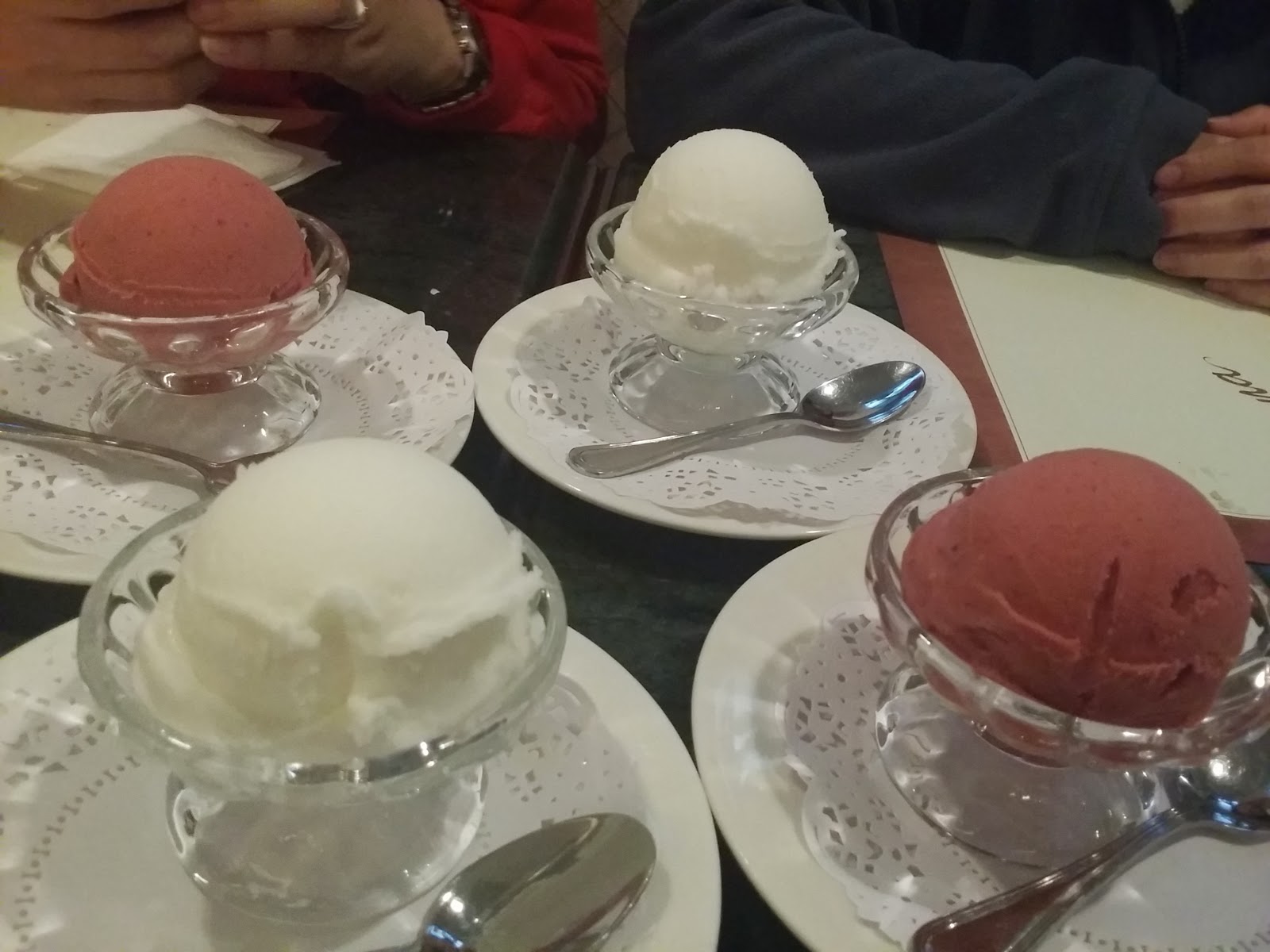 甜點是檸檬雪芭及藍莓士多啤梨雪芭