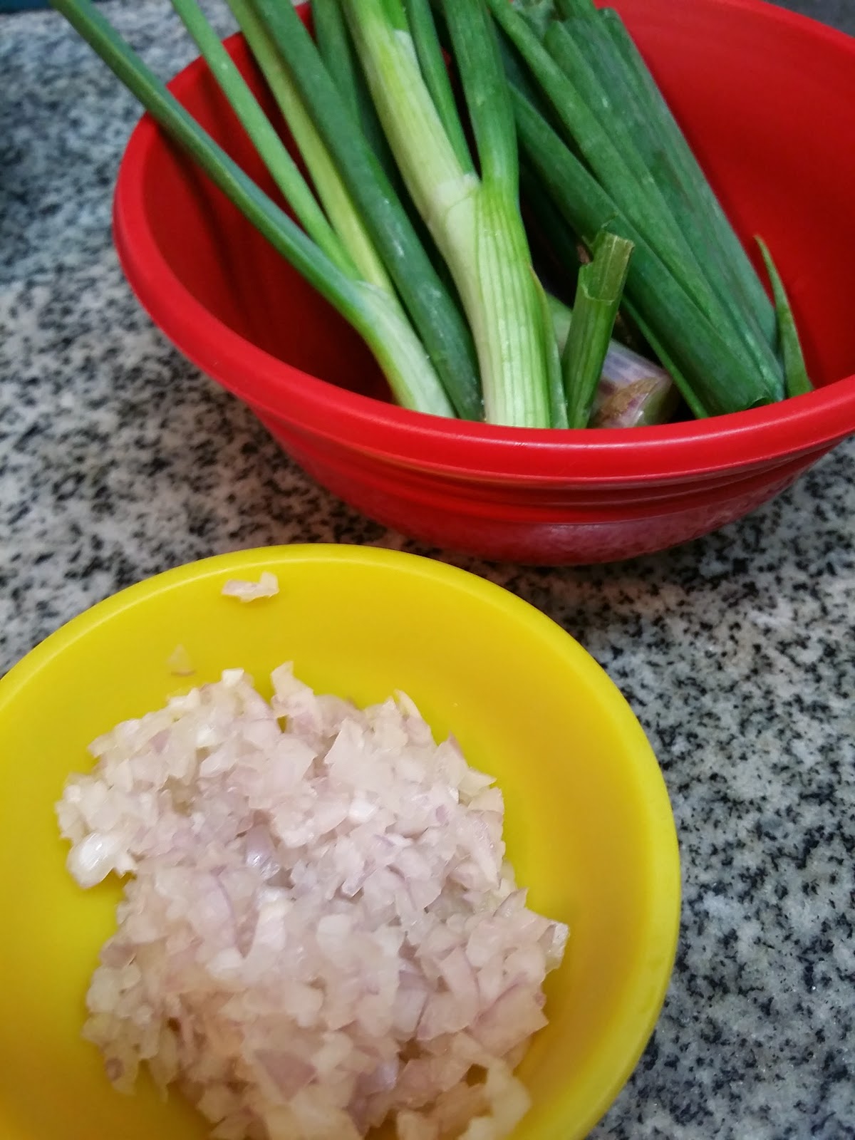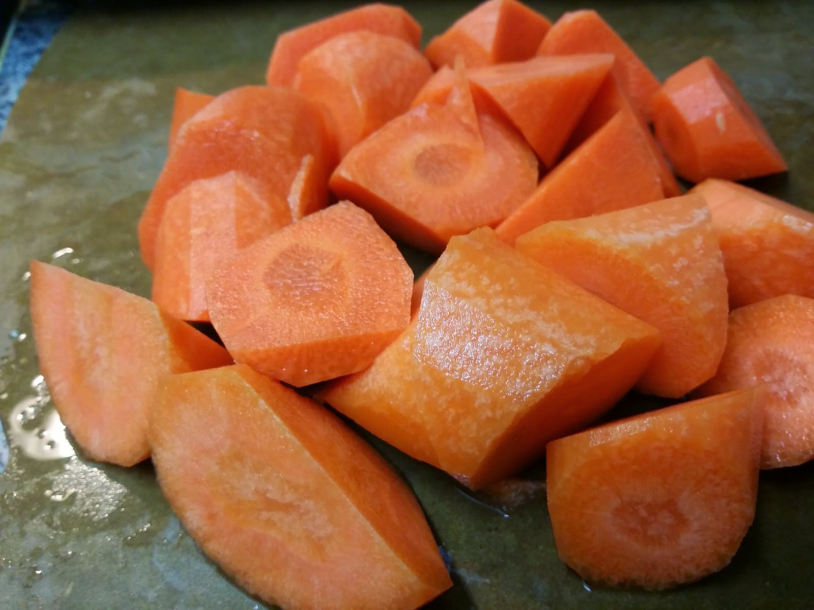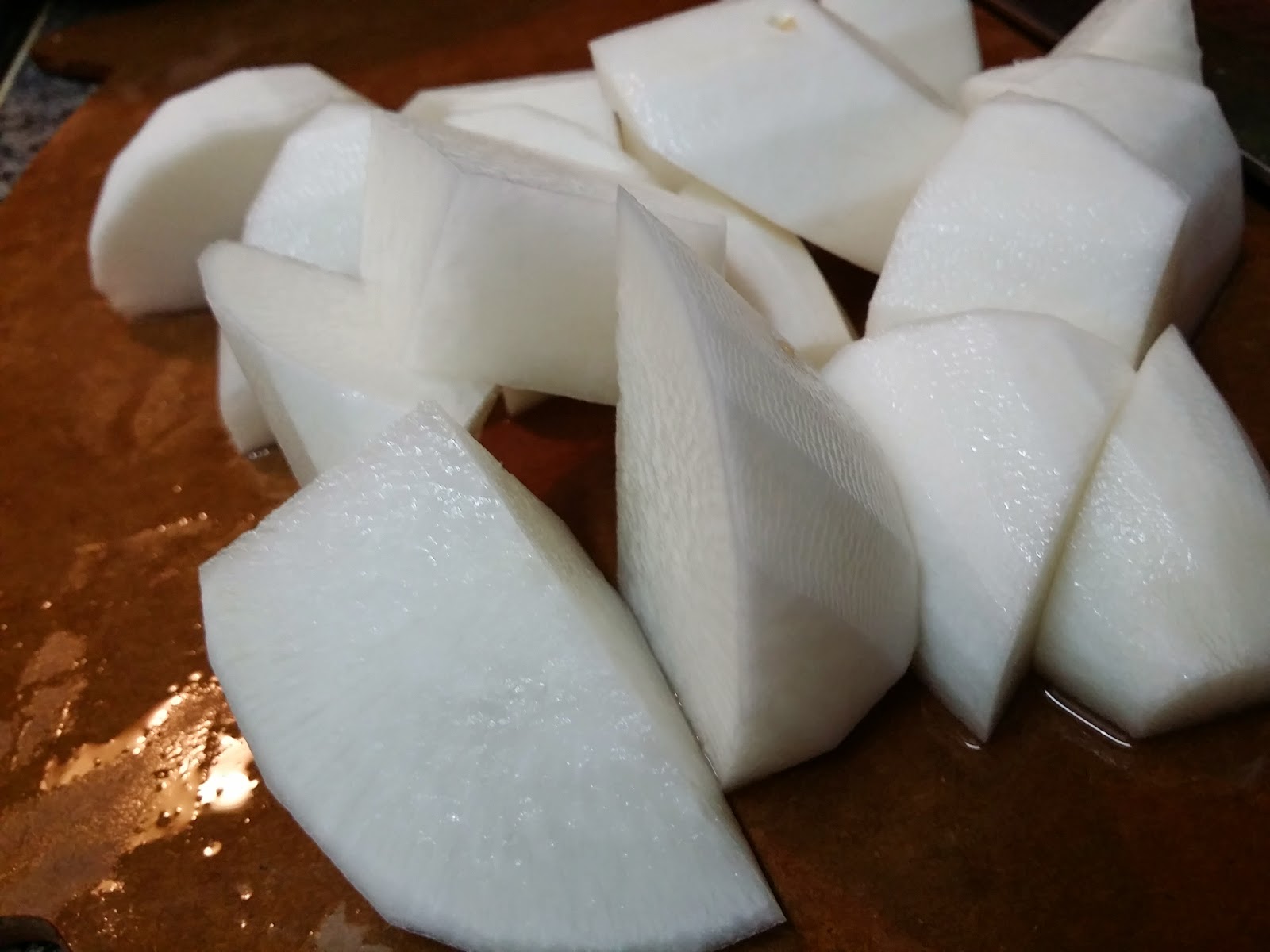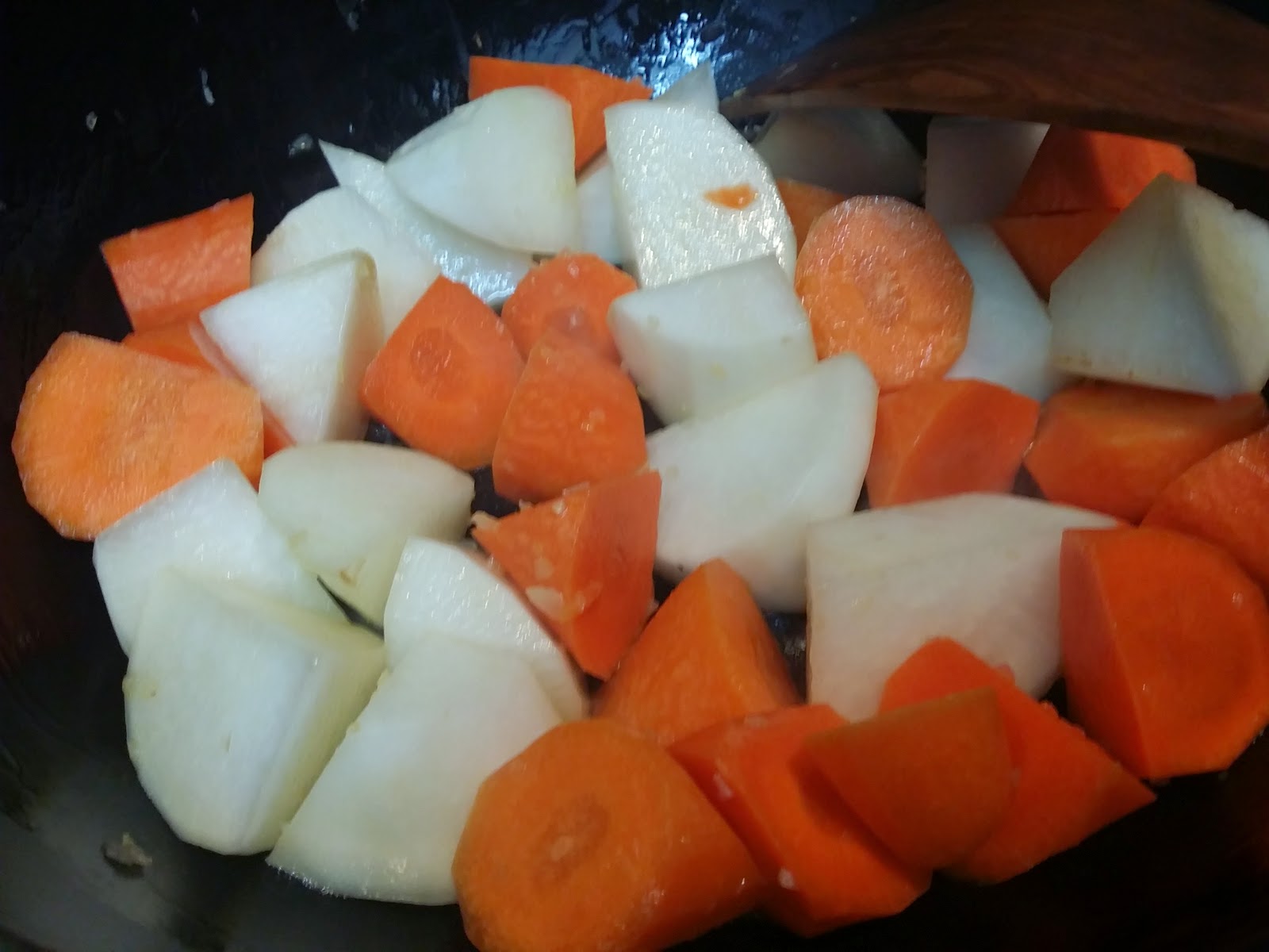 爆香乾蔥蓉、甘筍及白蘿蔔件