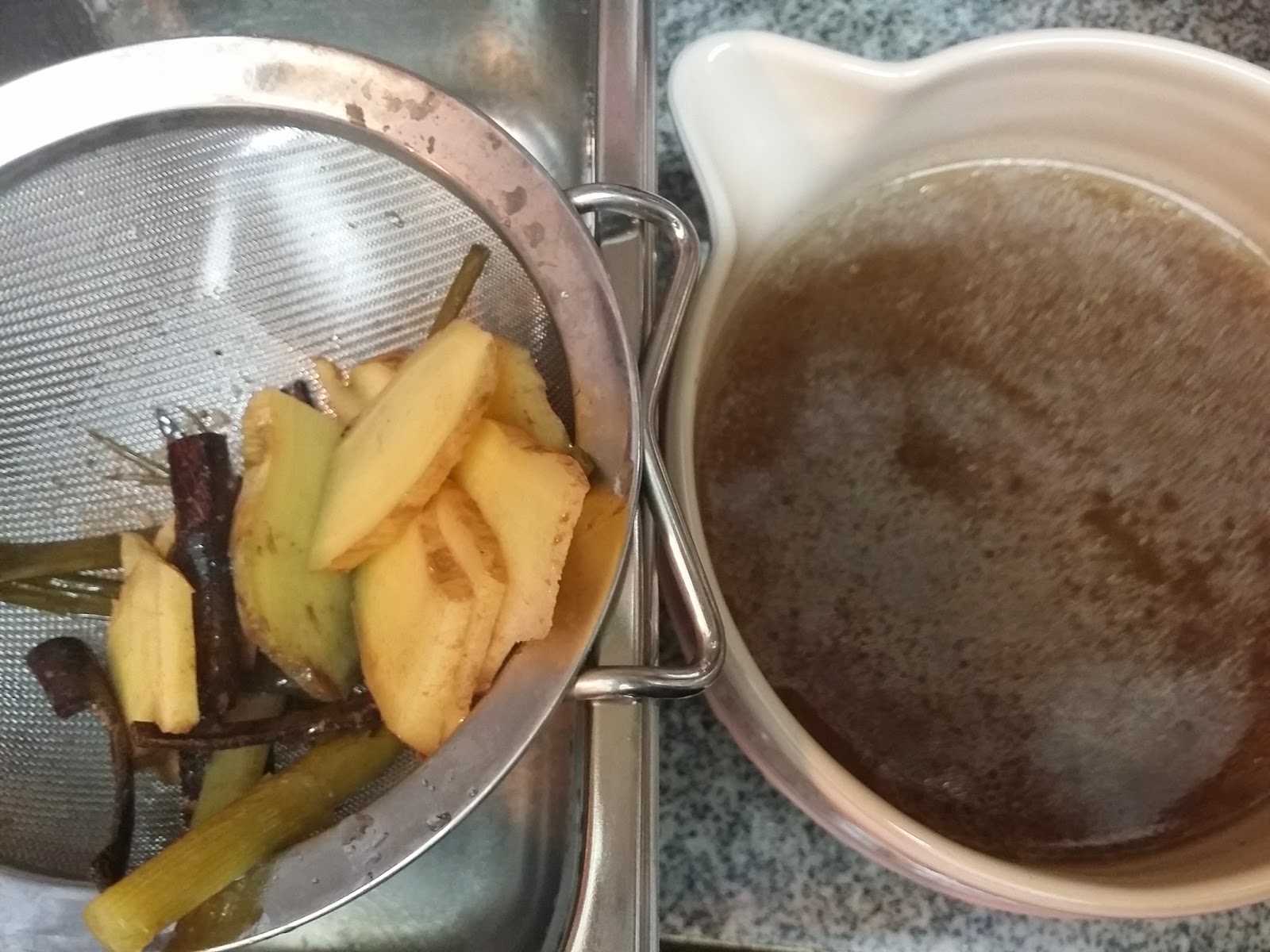 6. 牛肉湯隔去渣分備用 (先留起100ml做獻汁)