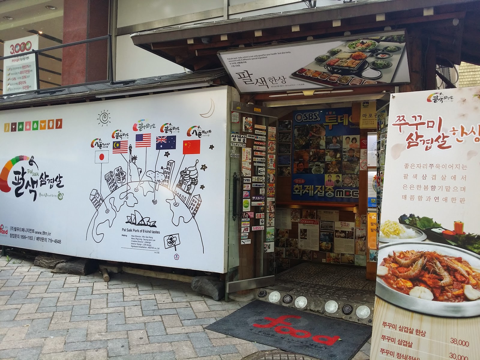 其實八色五花肉很出名,不少本地人,遊客都會來飲beer燒肉,部份店員識流利國語,而且餐牌也有中文字,所以點餐零難度, 位置亦很好找, 側邊就是KIA 車行。