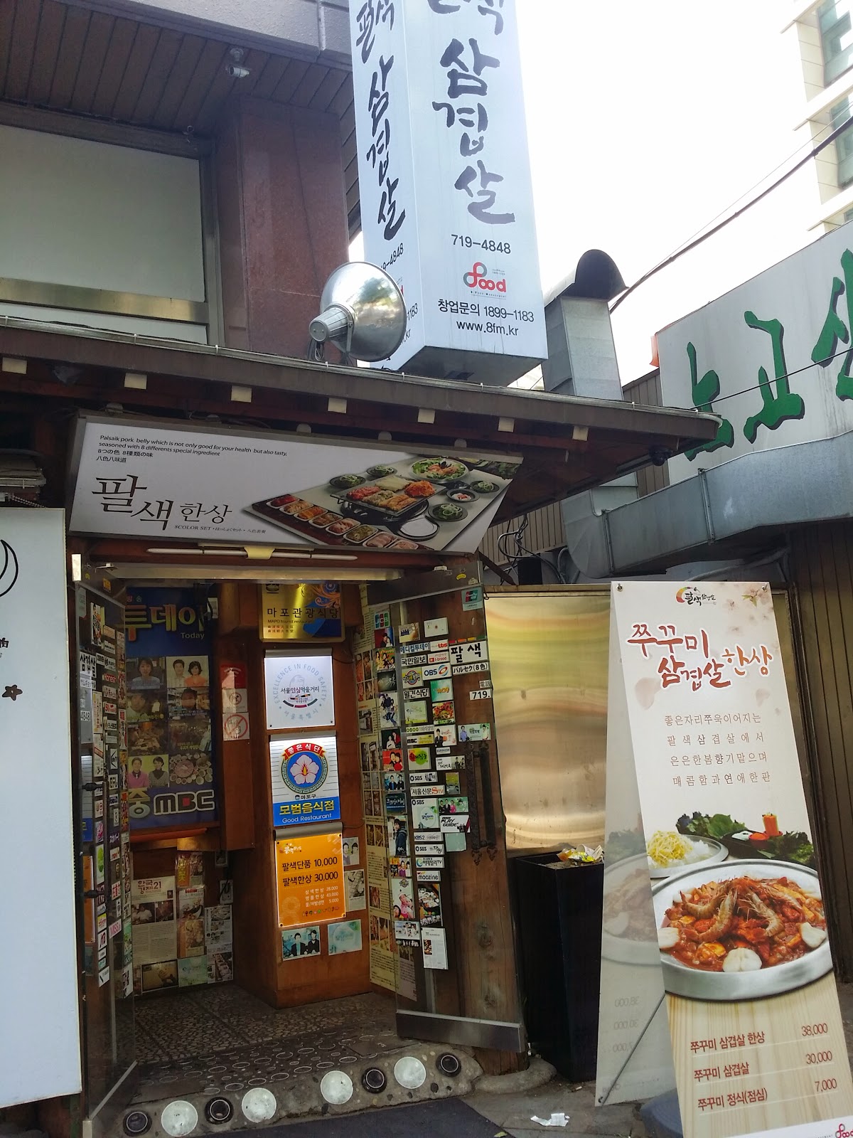 其實八色五花肉很出名,不少本地人,遊客都會來飲beer燒肉,部份店員識流利國語,而且餐牌也有中文字,所以點餐零難度, 位置亦很好找, 側邊就是KIA 車行。