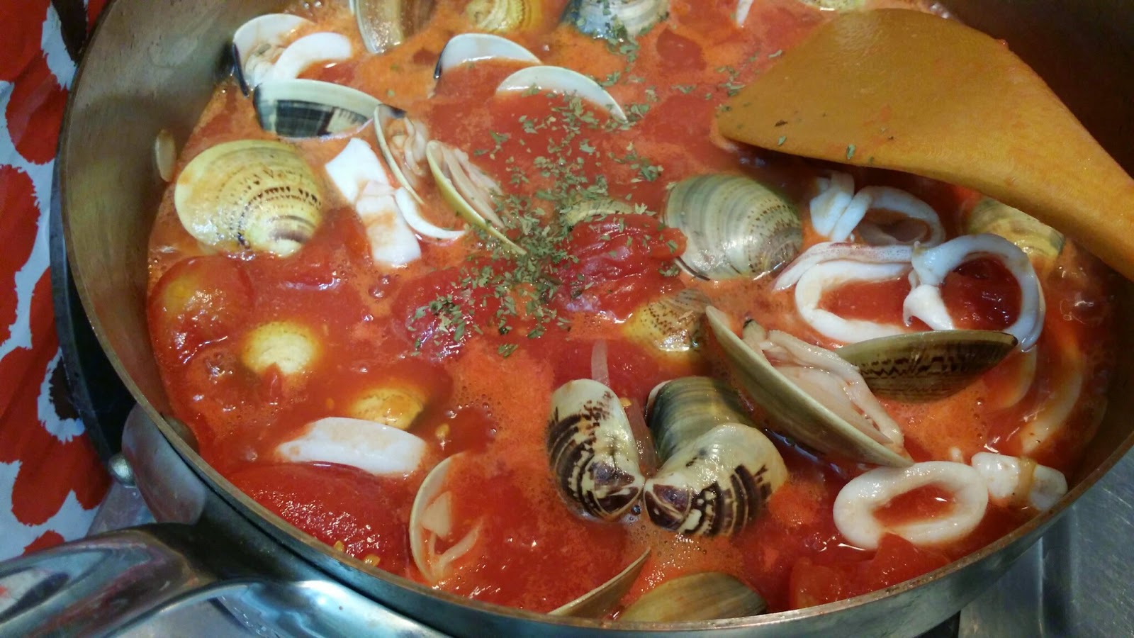 在水心火熱的呢一刻, 只做了簡單的【茄汁海鮮燴意粉】作為晚餐 !!