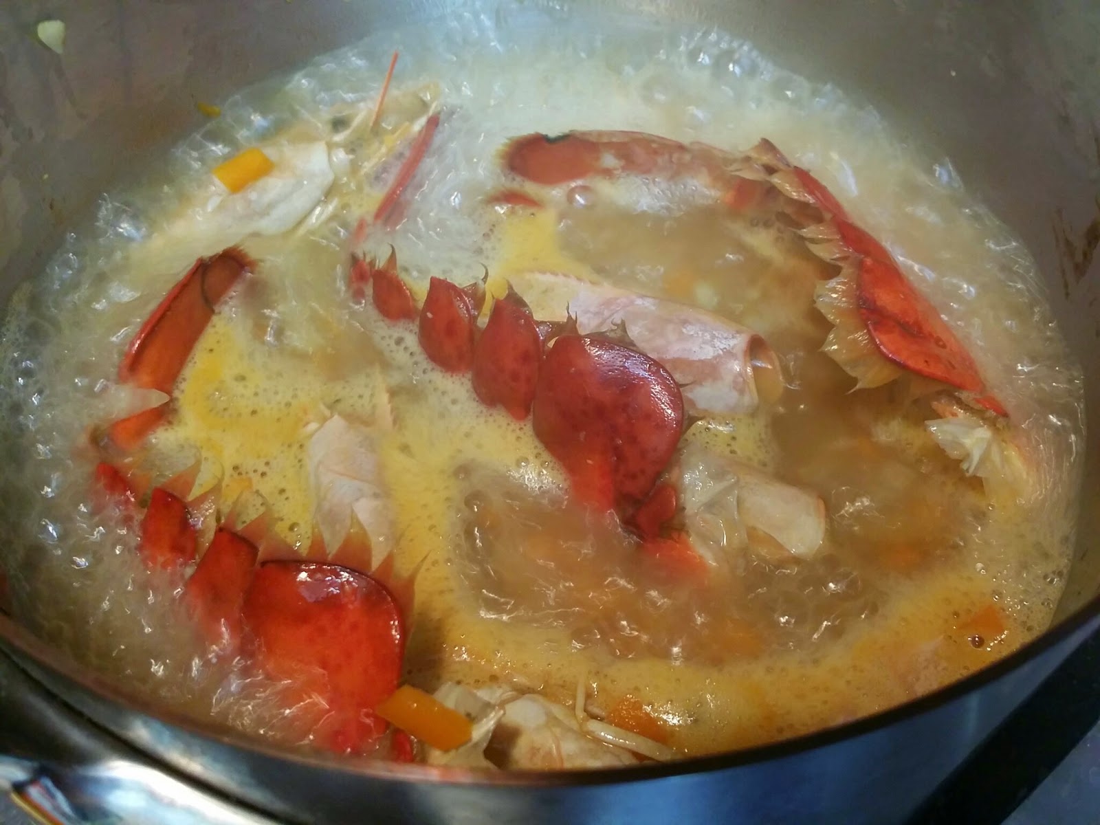 2. 煲滾水, 下龍蝦, 關火浸20秒