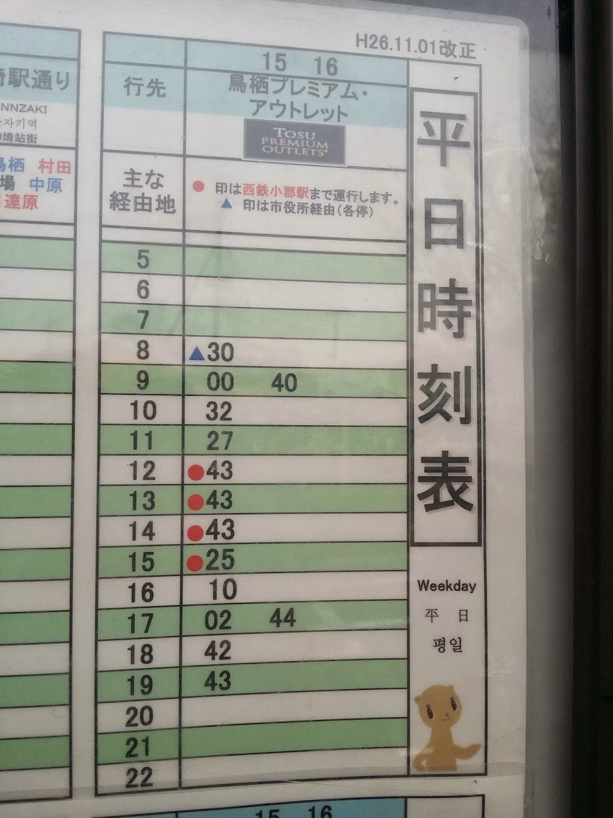 車站在鳥栖站一出對面, 向右望就見到, 乘坐15號巴士, 不出15分鐘就到達。