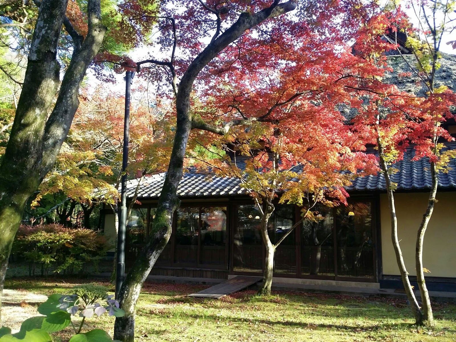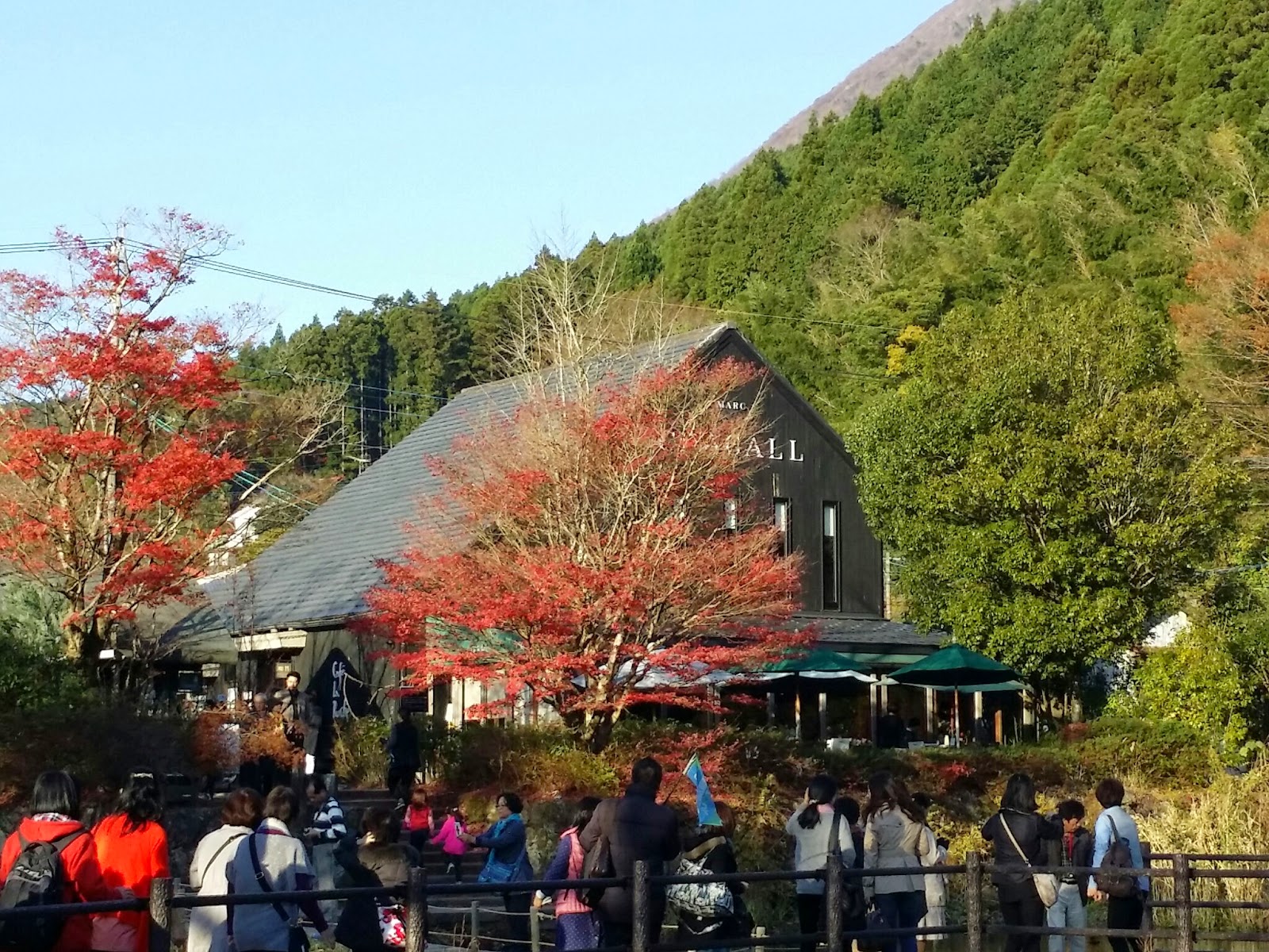 到站了, 下車就感受到由布院的美, 紅葉處處, 時間還早