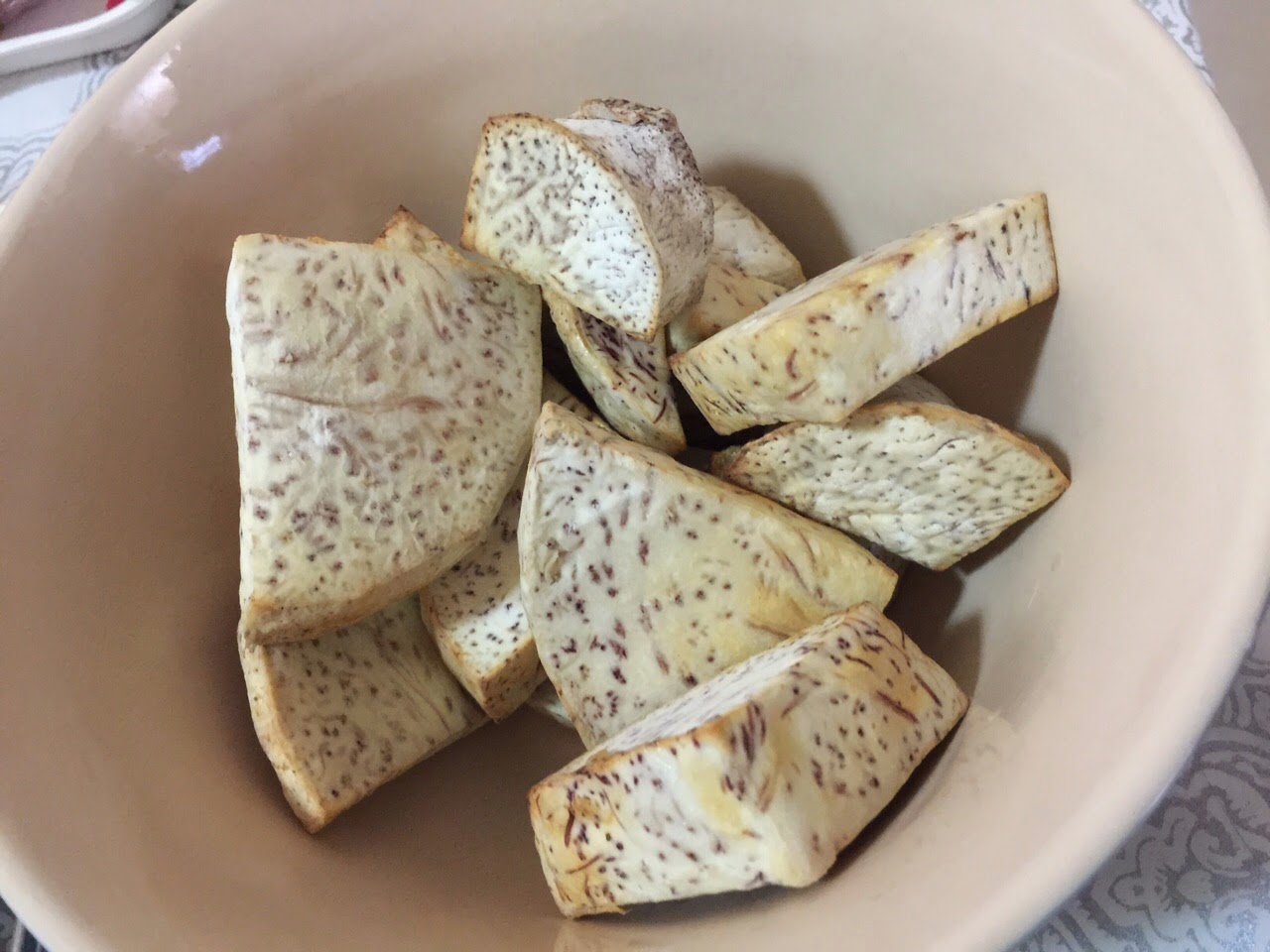 芋頭半個 - 切厚塊 *炸一下備用, 我是噴了油用airfryer 200度15分鐘