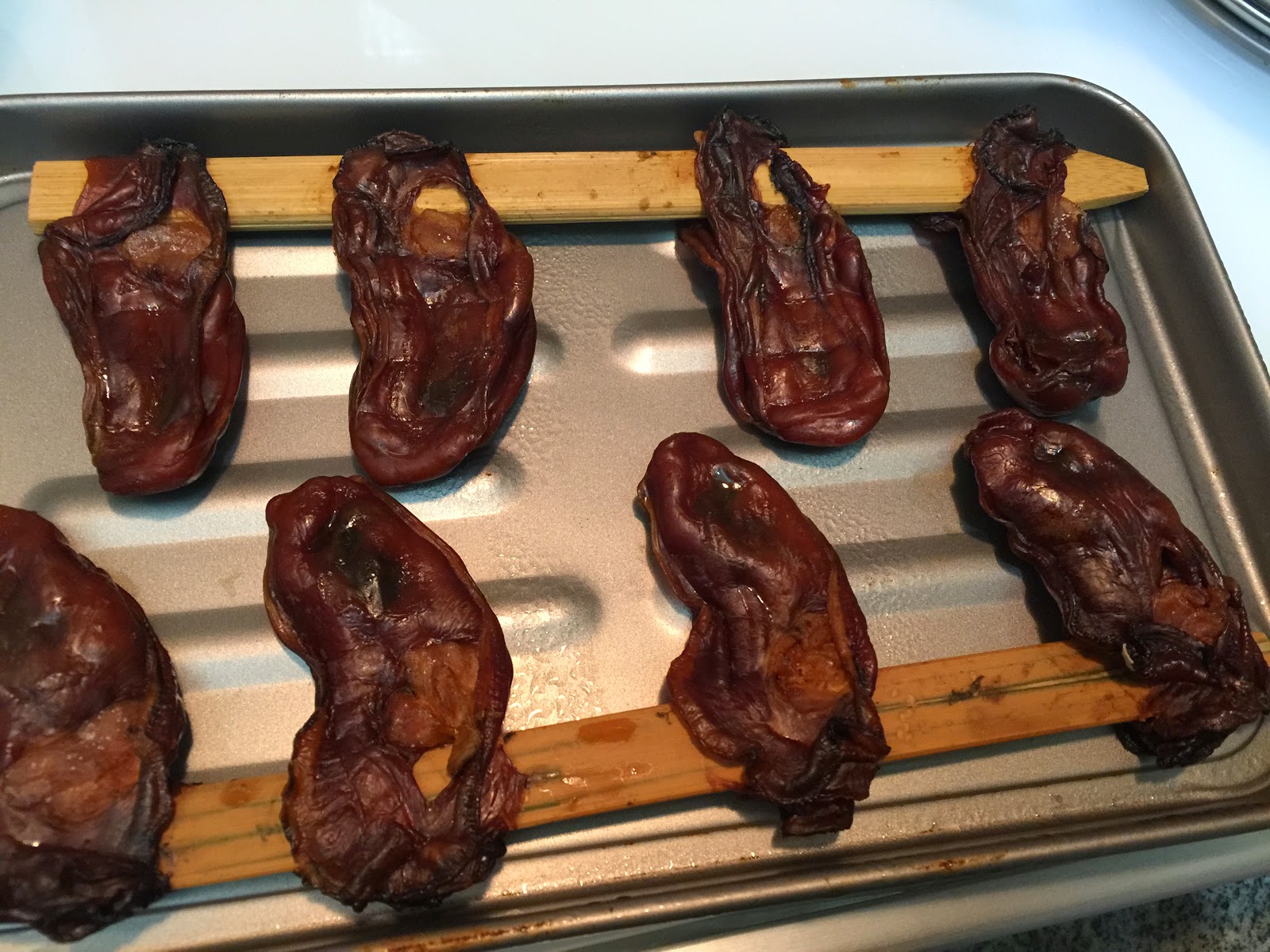 在竹纖上的蠔, 只要蒸5分鐘, 就可輕易拉出