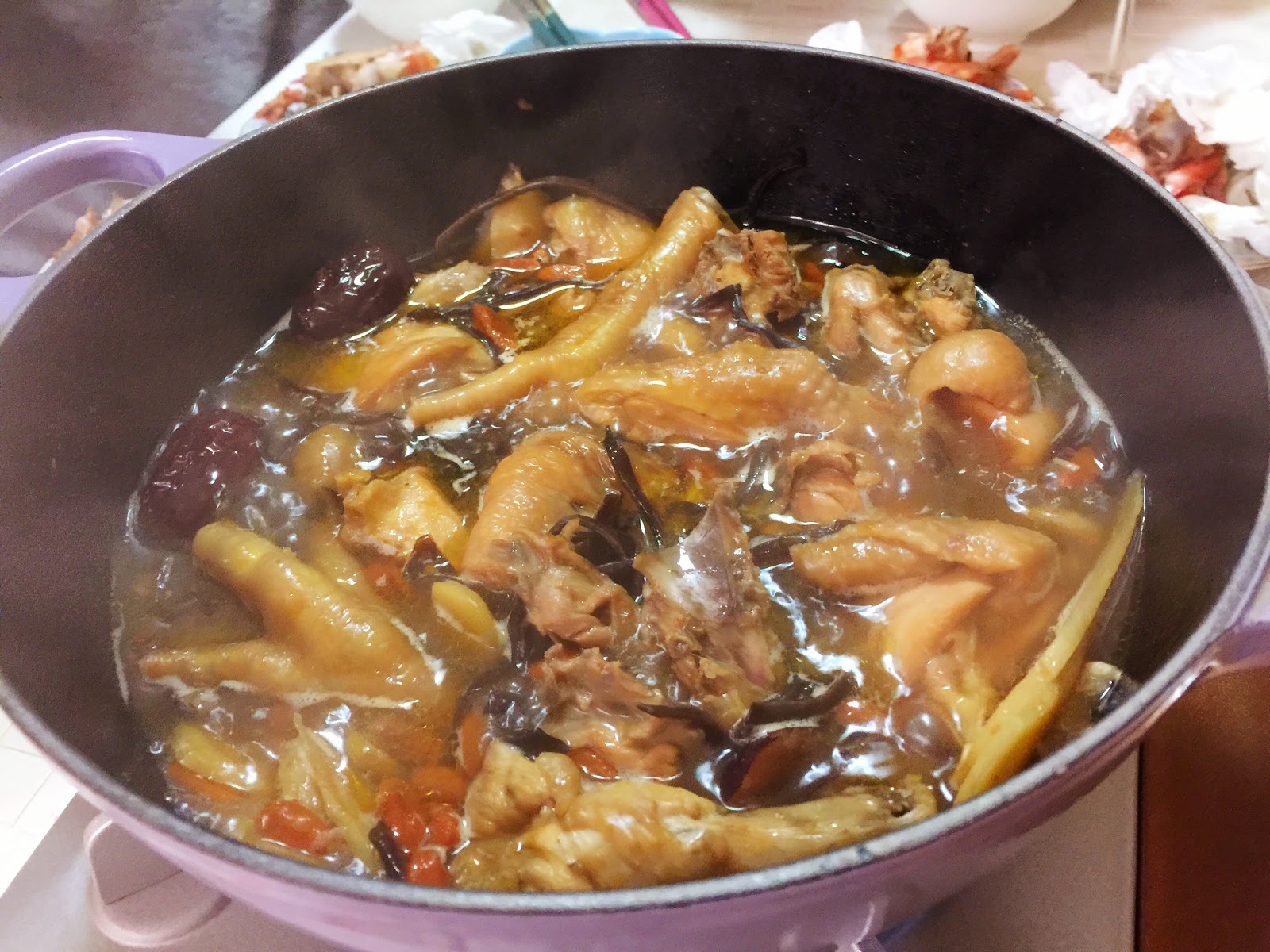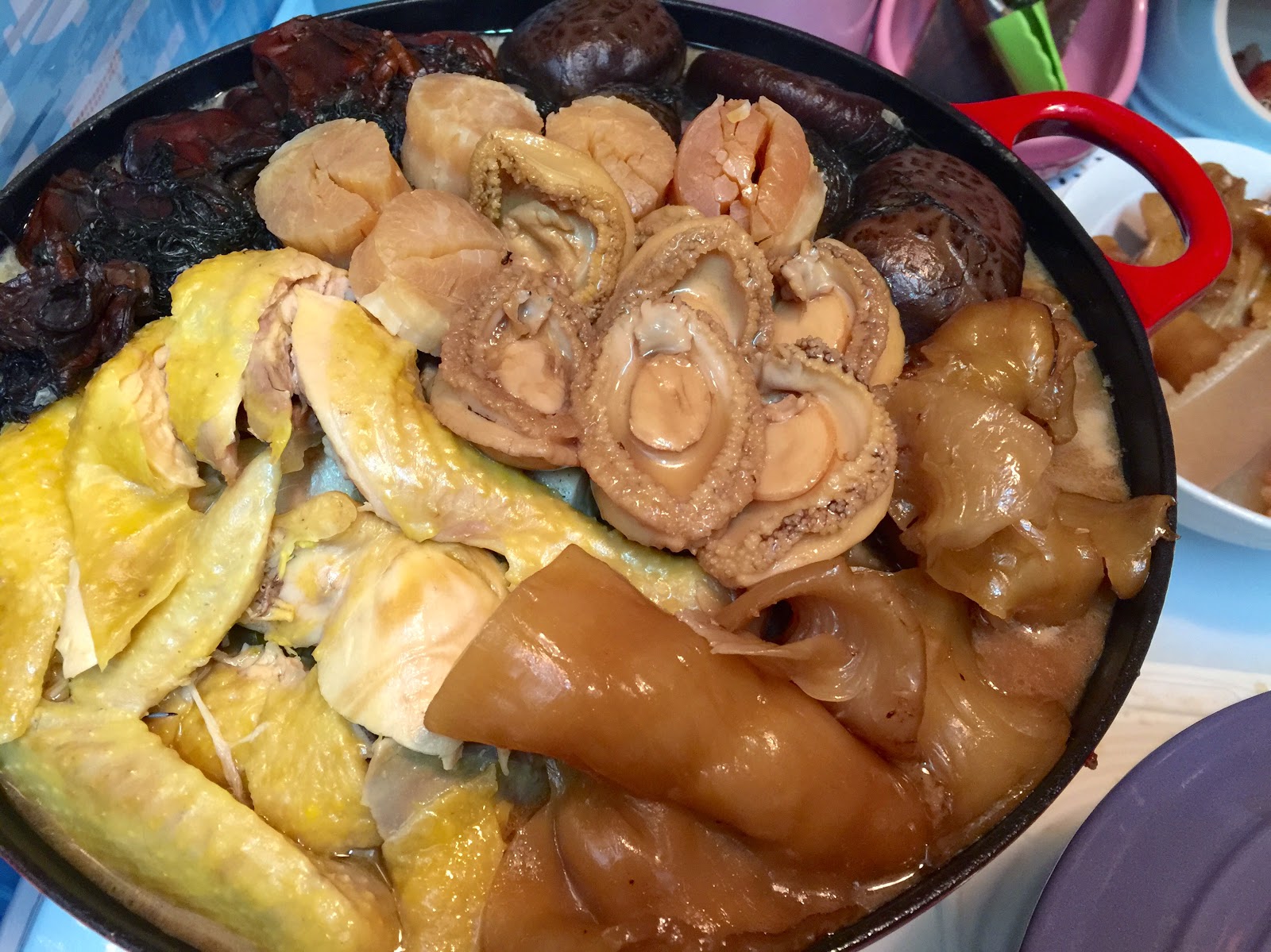 是次做盤菜idea是煮友少媽的鬼主意,我們相約到維家團年,原本是potluck 形式,但幾天前才改為盤菜,也好,就決定用紅當當的Le Creuset 媽咪鍋,夠像樣了吧。